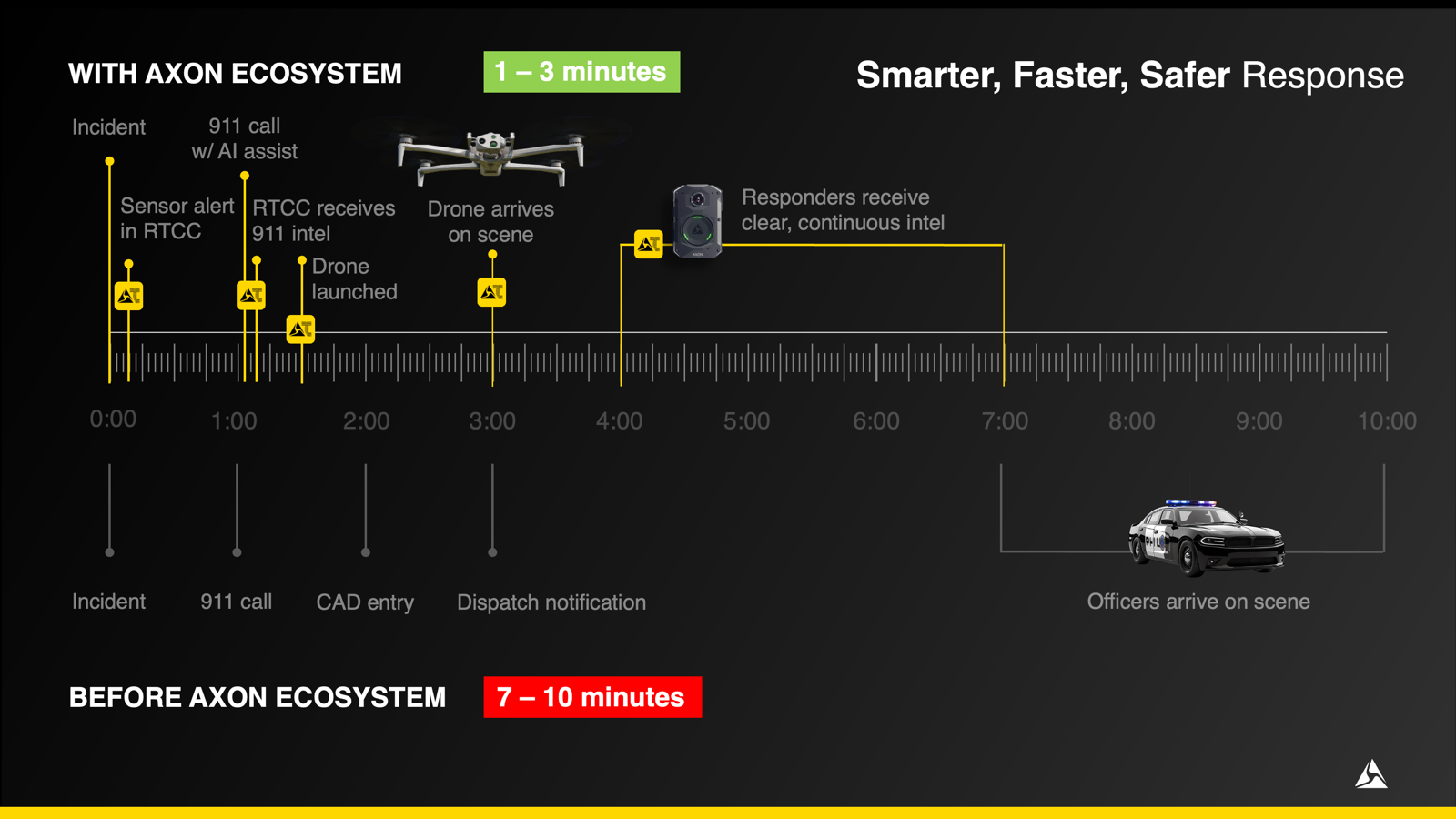 Across the United States and around the world, public safety agencies are being asked to do more with less. Crime remains roughly 40% higher than pre-2020 levels. Many departments face staffing shortages. The first two minutes of a 911 call often determine outcomes, yet the average response time for top-priority calls remains between seven and 10 minutes. These are the moments Axon is determined to change.